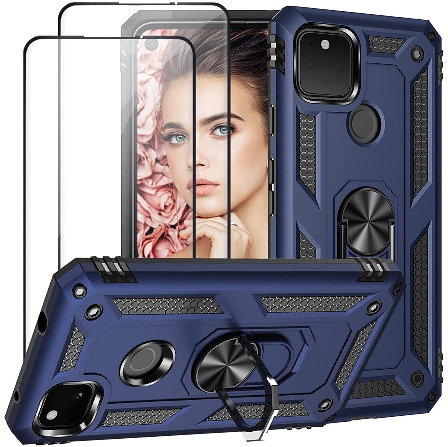 2022 Luxury Armor Ring Bracket Phone case For Google Pixel 5 With 2-Pack Screen Protectors