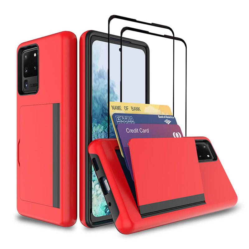 Armor Protective Card Holder Case for Samsung S20 Ultra With 2-Pack Screen Protectors