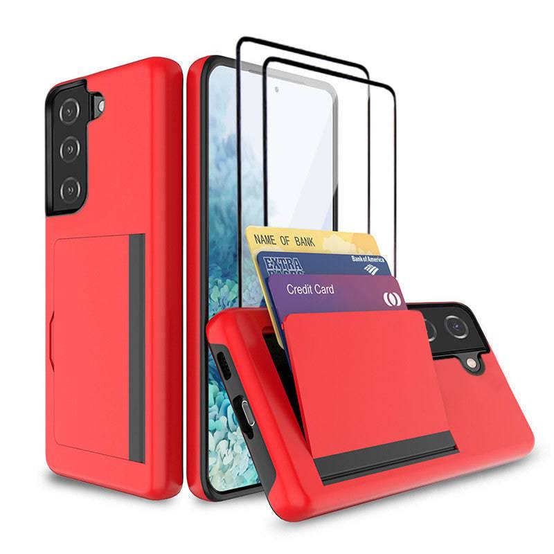Armor Protective Card Holder Case for Samsung S21(5G) With 2-Pack Screen Protectors
