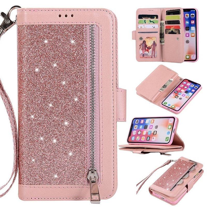 Bling Wallet Case with Wrist Strap for iPhone 12 Series