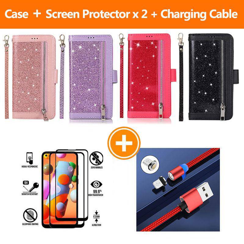 Bling Wallet Case with Wrist Strap for Samsung A42(5G)