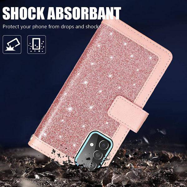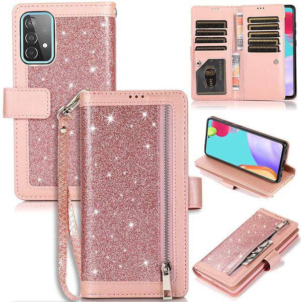 Bling Wallet Case with Wrist Strap for Samsung A52(4G/5G)
