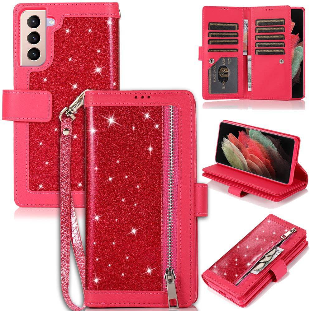 Bling Wallet Leather Case for Samsung S21