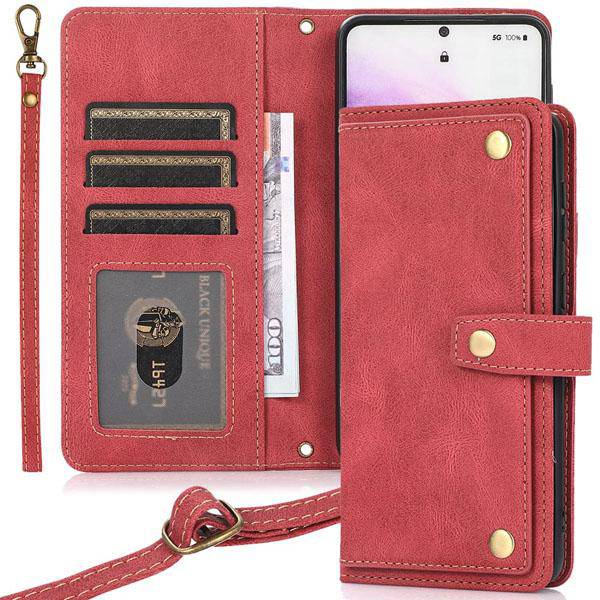 Leather Crossbody Shockproof Wallet Phone Case for Samsung S21