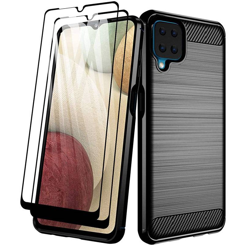 Luxury Carbon Fiber Case For Samsung A12 With 2-Pack Screen Protectors