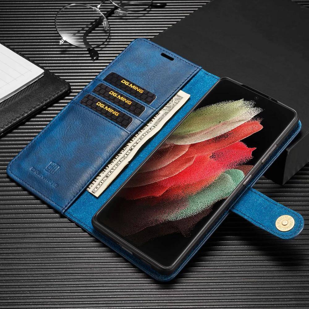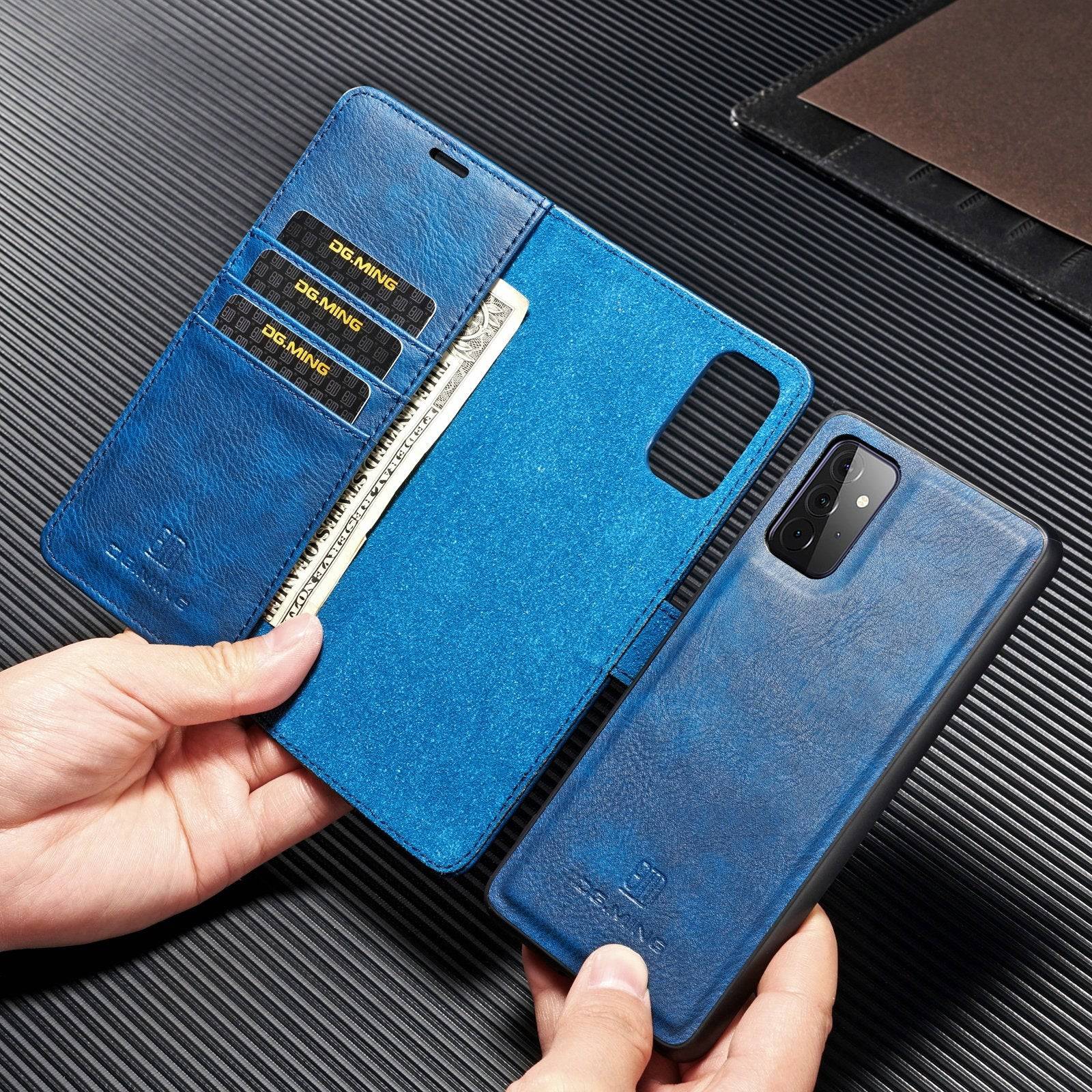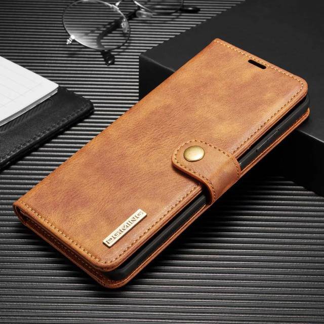 3. This case features 2-in-1 design with a split leather wallet cover and a detachable leather coated back case.