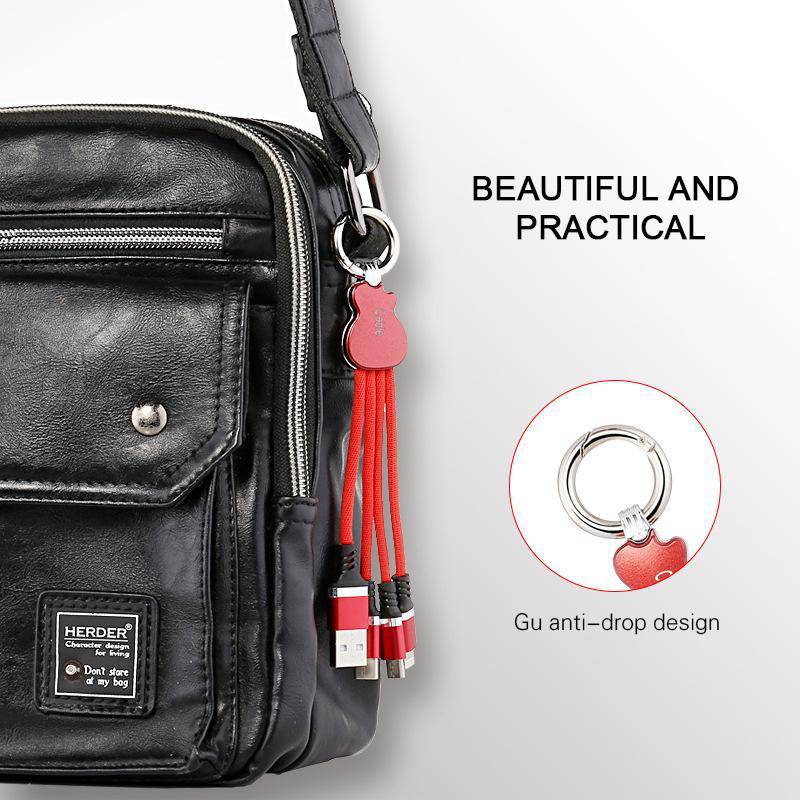 Cute Guitar Multi 3 In 1 Usb Charging Cable Guitar Design Keychain Data Sync Line For Samsung Iphone Android