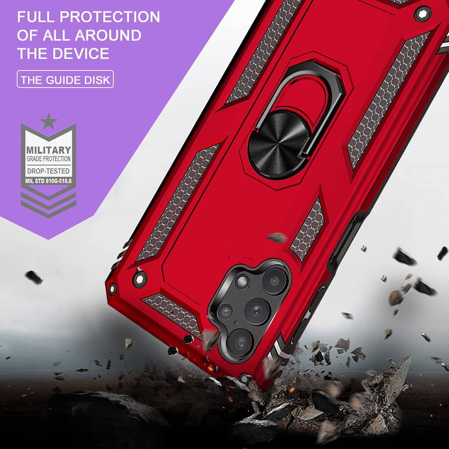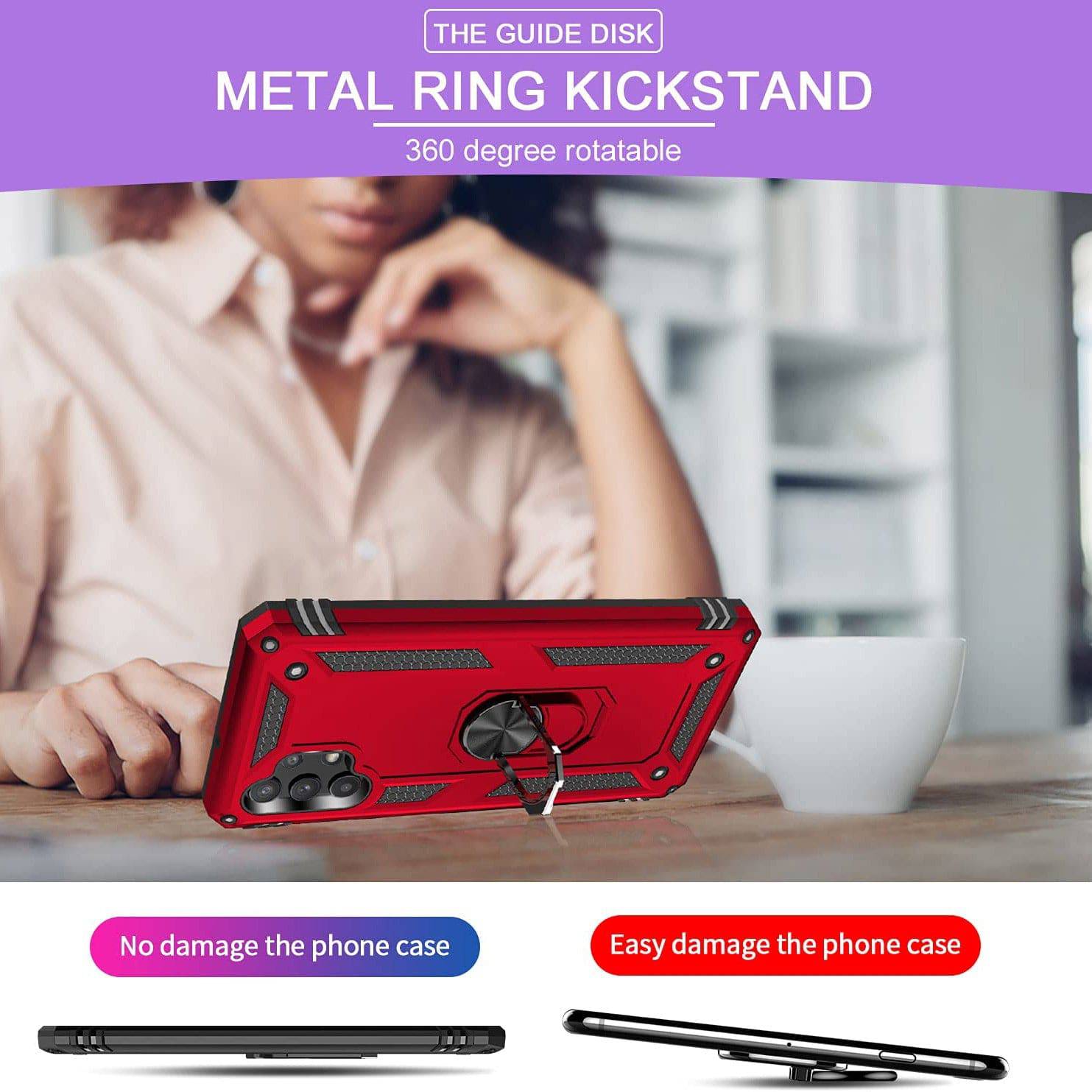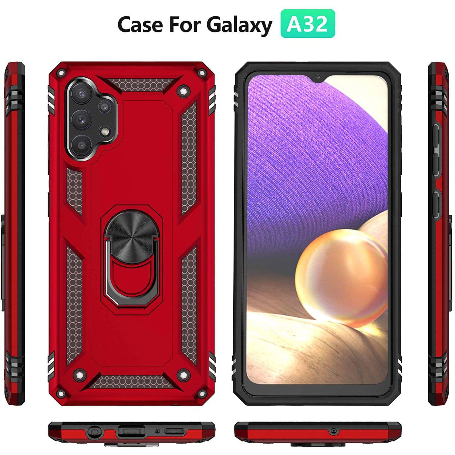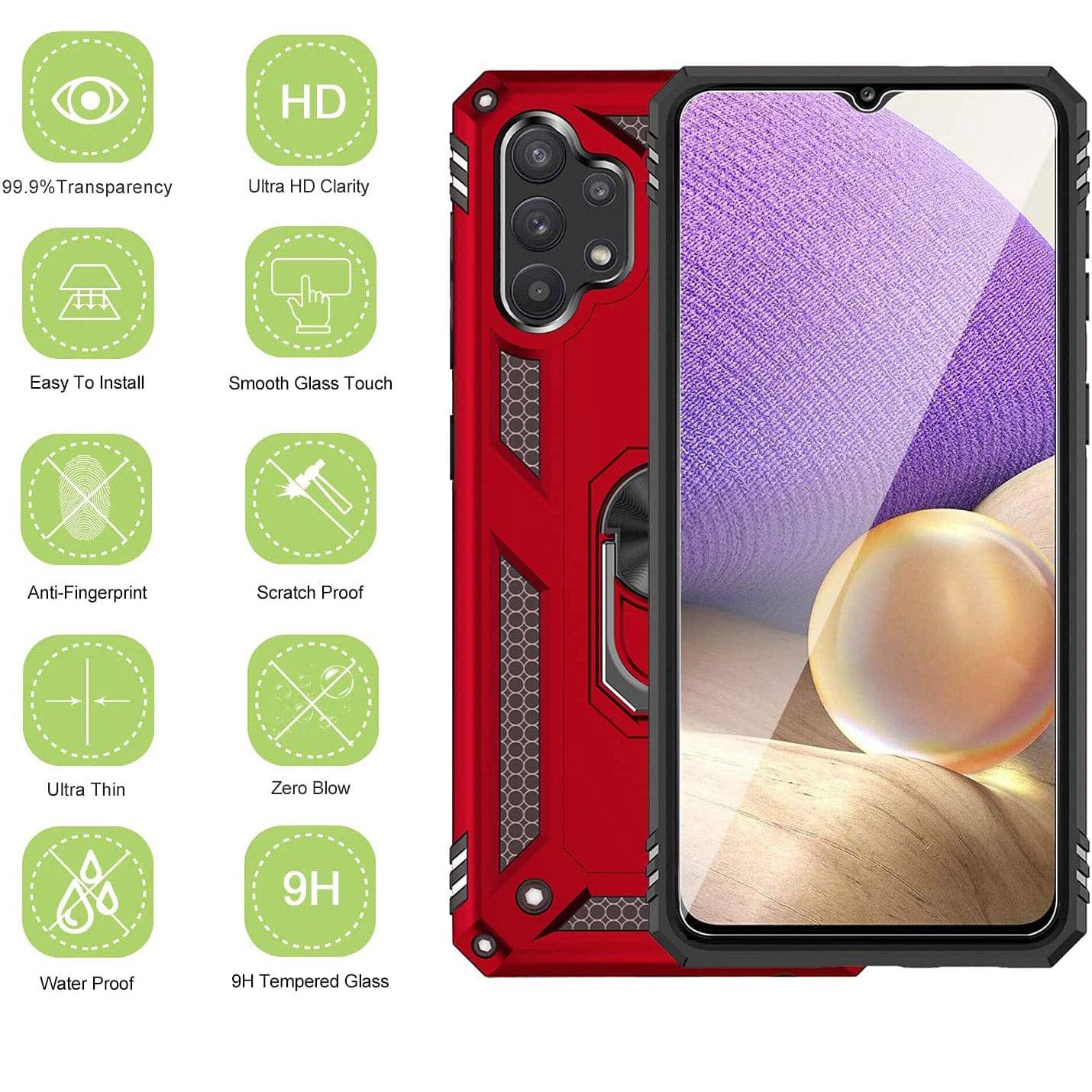 Our Armor Ring Bracket Series Samsung A32(5G) Cases are completely unmatched in creativity and uniqueness. Also comes with 2 pcs tempered glass screen protectors.