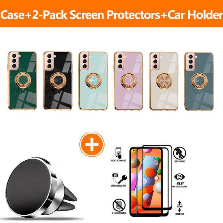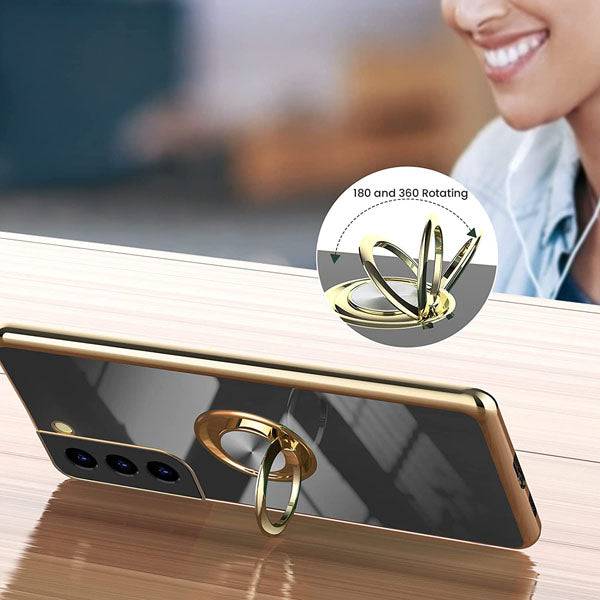 Shiny Plating Built-in Finger Ring Case For Samsung S21