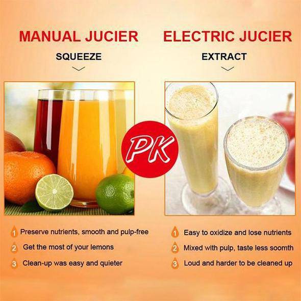 - EASY TO USE: Put the fruit in a perforated container and press the handle to make the juice flow out of the juicer.