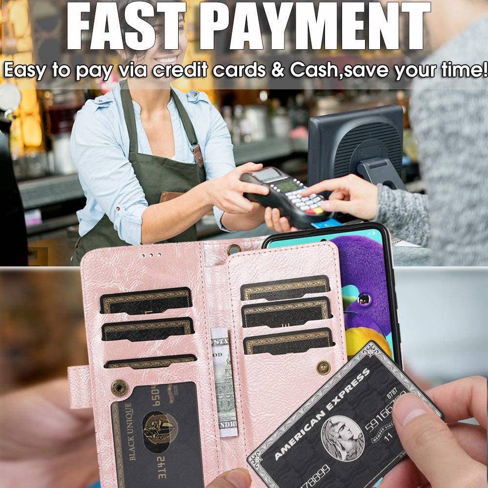 - WALLET AND ZIPPER DESIGN -- with card slots,money holder,zipper coin pocket.With plentys of space to your basic cards,notes and coins which makes payment convenient and fast. serves like a small clutch bag,perfect for shopping,party and travel.
