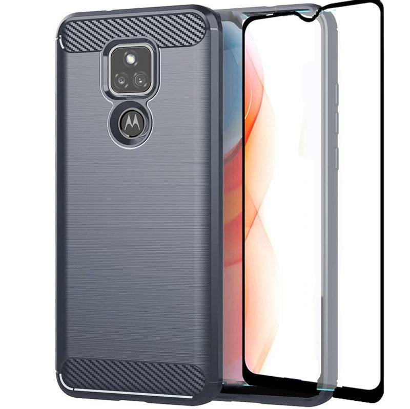 Luxury Carbon Fiber Case For Moto G Play 2021 With Screen Protector
