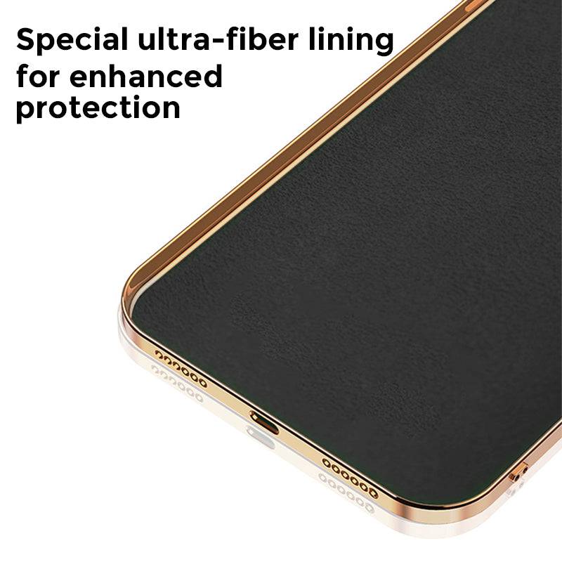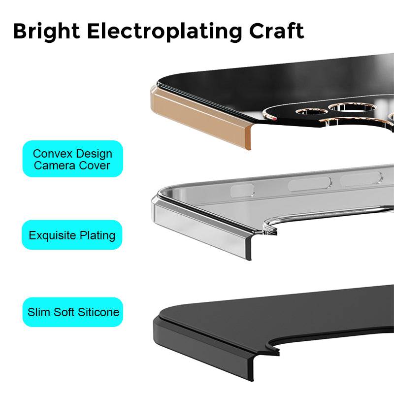 This phone case with raised shock-absorbent edge for protection on the screen and camera. Flexible TPU bumper sparkly plating rose gold slim edge, soft comfortable touch feeling and easy to install and remove the case.