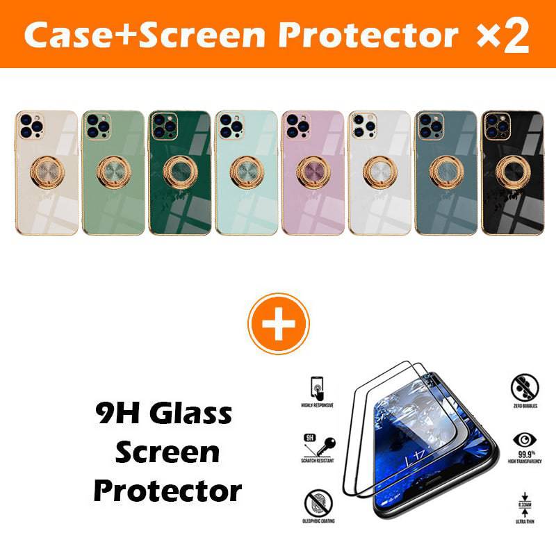 Shiny Plating Built-in Finger Ring Case For iPhone 12 Series