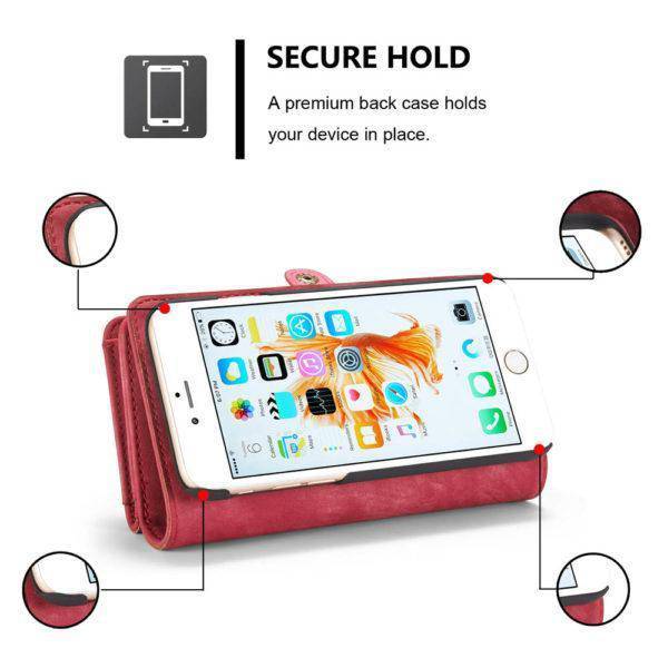 iPhone Multi-slot Zipper Wallet Folio Case Magnetic Detachable 2 in 1 Back Cover can store up to 10 credit cards including 2 ID Picture Slot, 3 pocket for cash, 1 zipper storage coins. carry around your ID, credit and debit cards, and cash without having to take your wallet with you. With a back magnetic closure design, easy to open and close, more importantly, keeps your phone more secure. small photo frame can put photo, memo cards inside, self-stand functions provide easy enjoy while reading and watching movies with your iPhone.