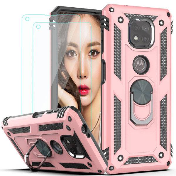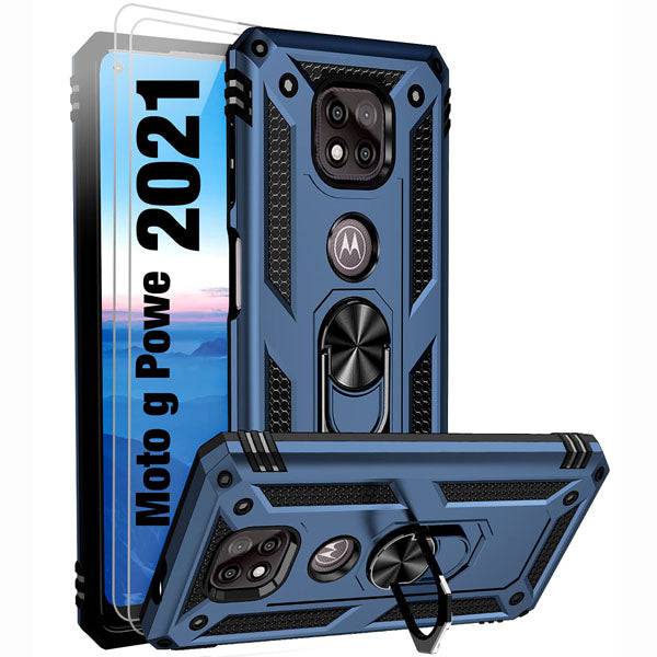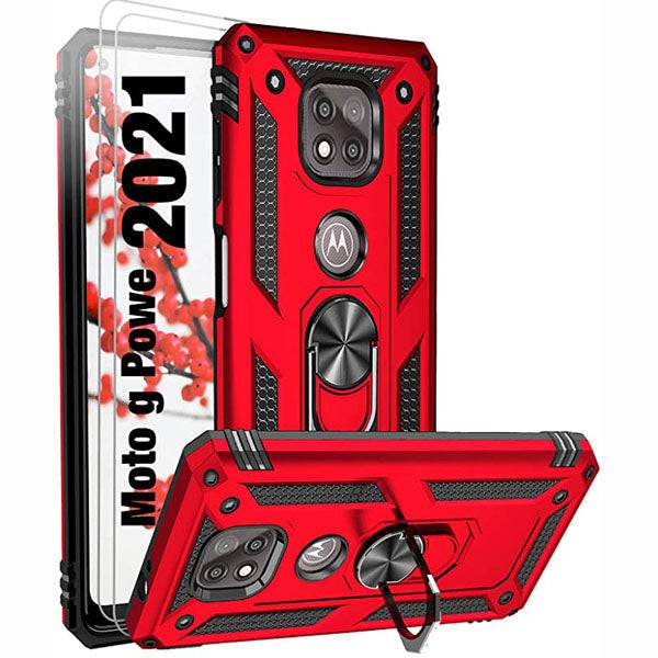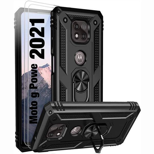 2022 Luxury Armor Ring Bracket Phone case For MOTO G Power 2021 With 2-Pack Screen Protectors