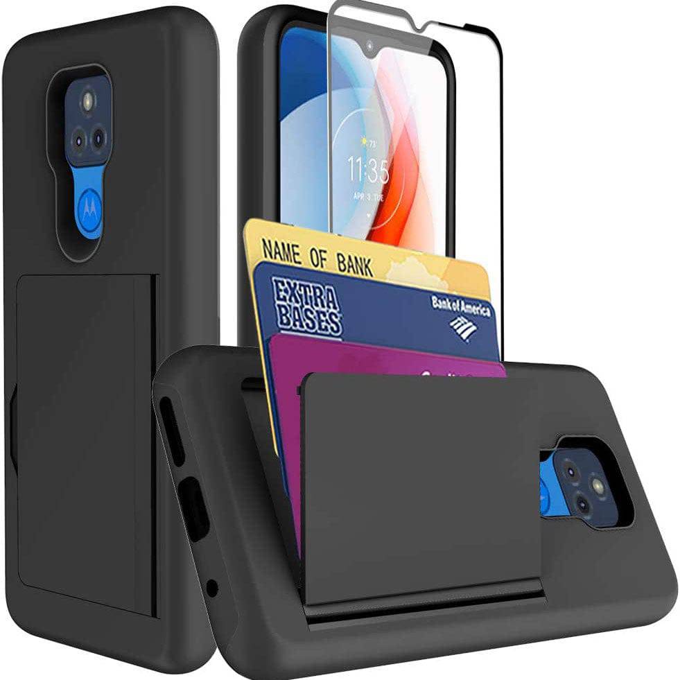 Capa protetora de cartão de armadura para Moto G Play 2021 com protetor de tela