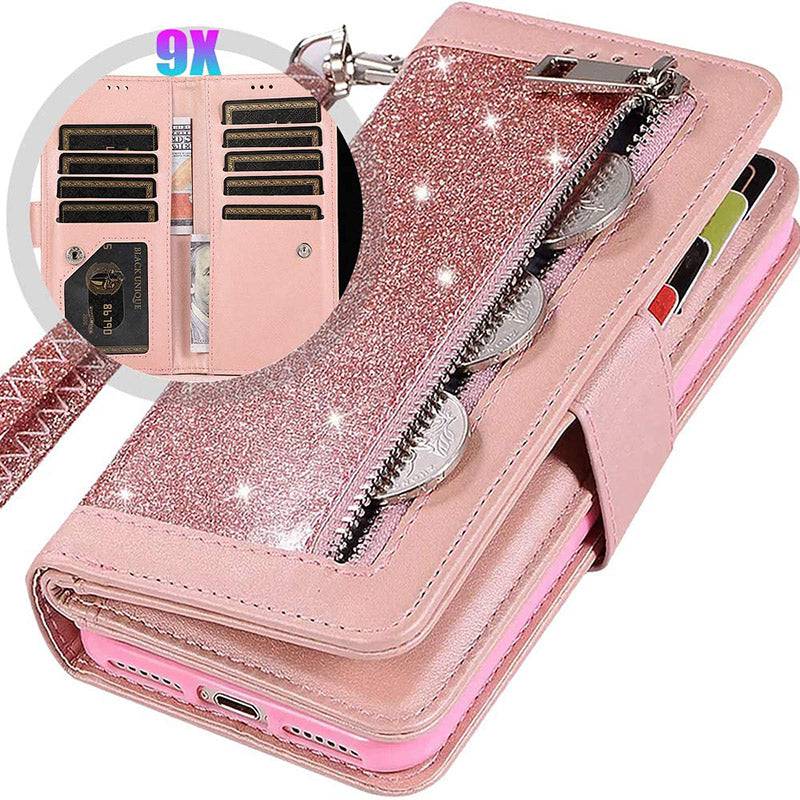 Capa carteira Bling com alça de pulso para Samsung Note 20 Series