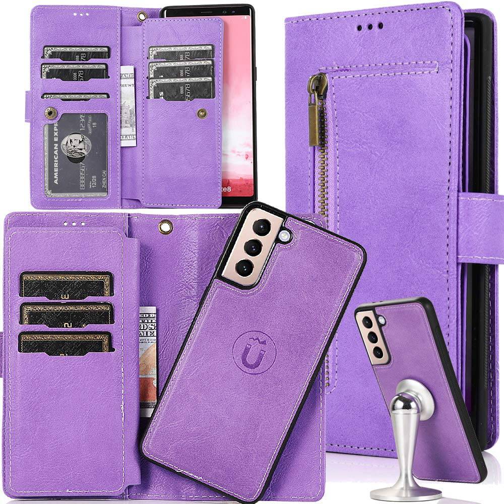 Capa de telefone com bolsa removível com zíper flip para Samsung S21 Series