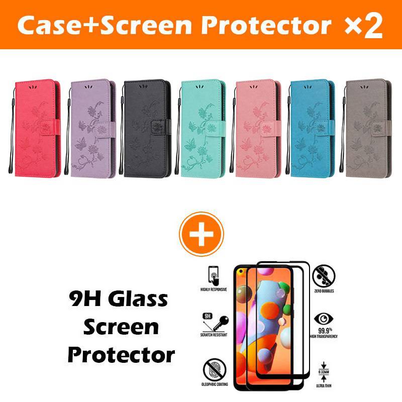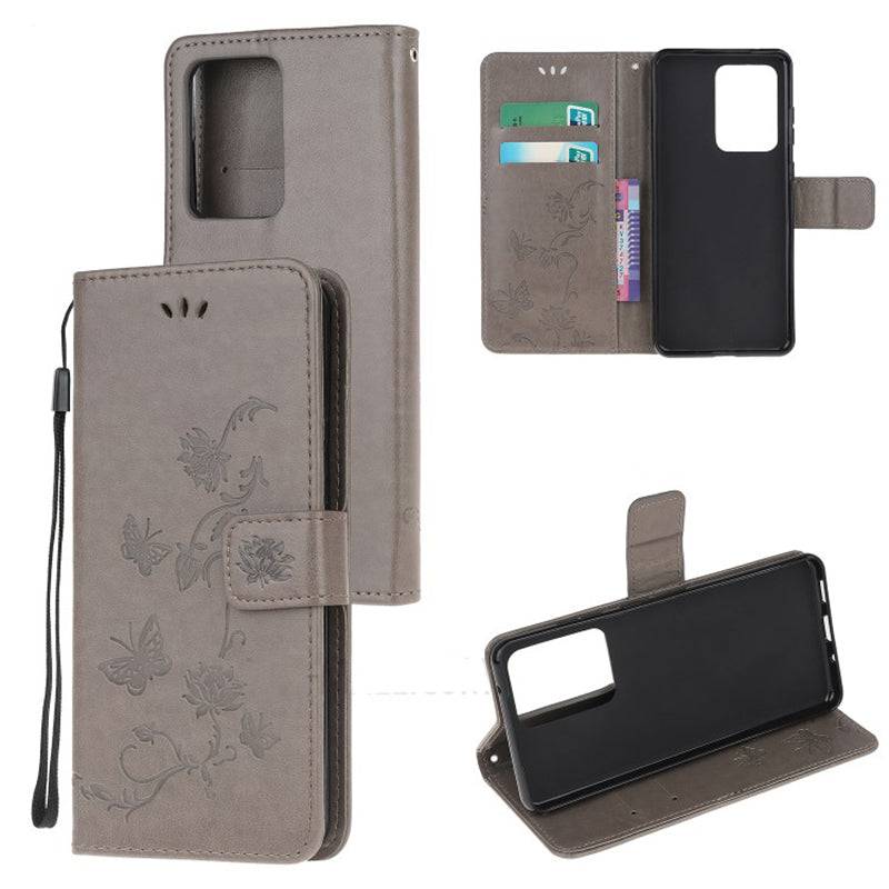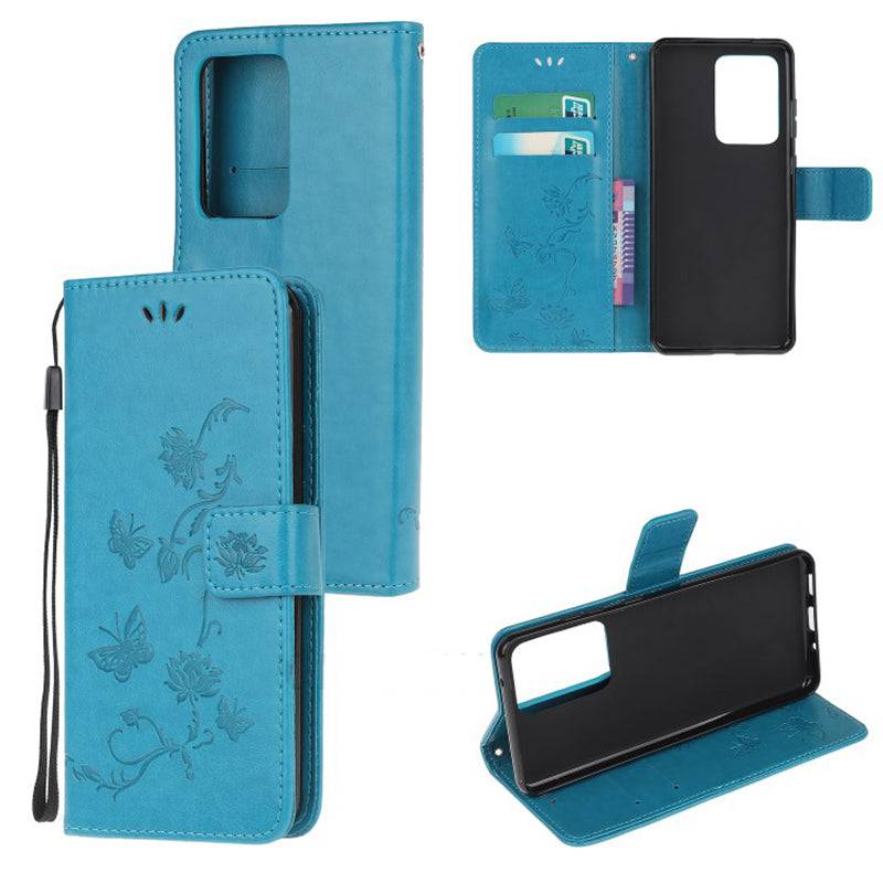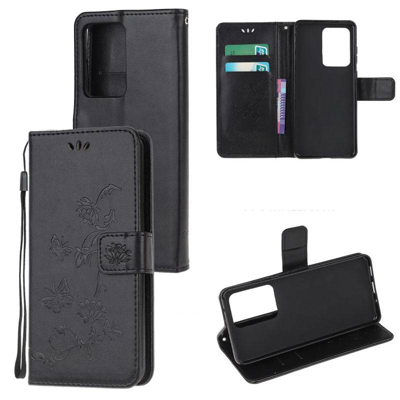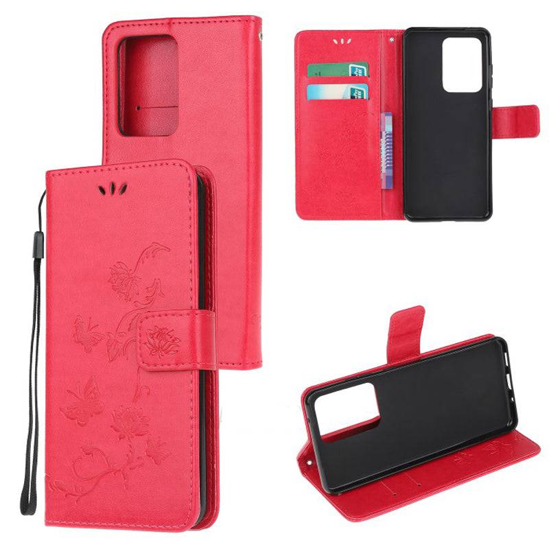Capa de telefone móvel de couro com flor de borboleta impressa para Samsung S21 Series