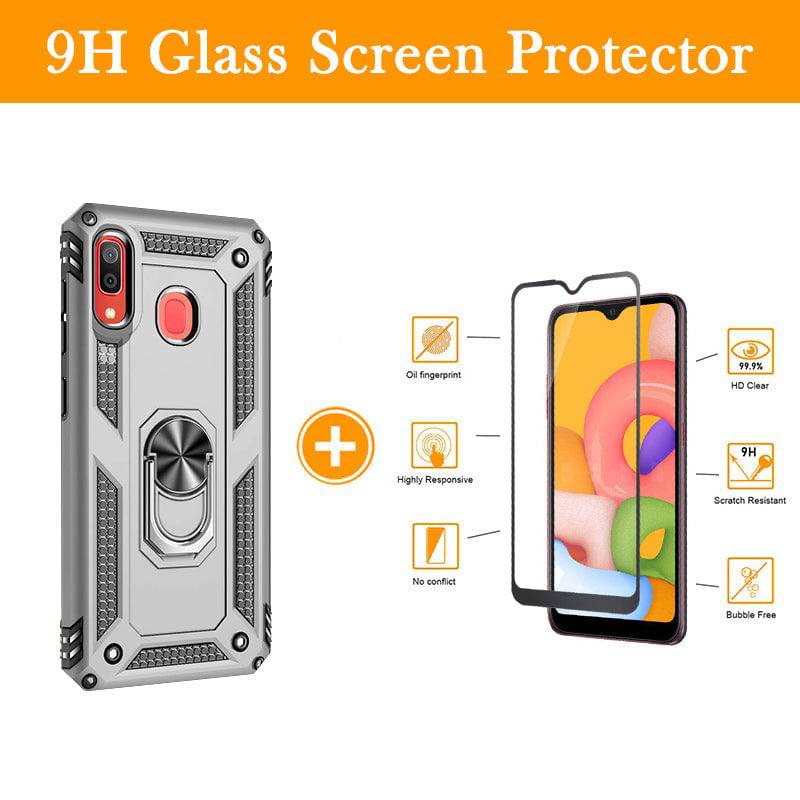 Capa de telefone com suporte de anel de armadura de luxo para Samsung A20 e A30-Entrega rápida